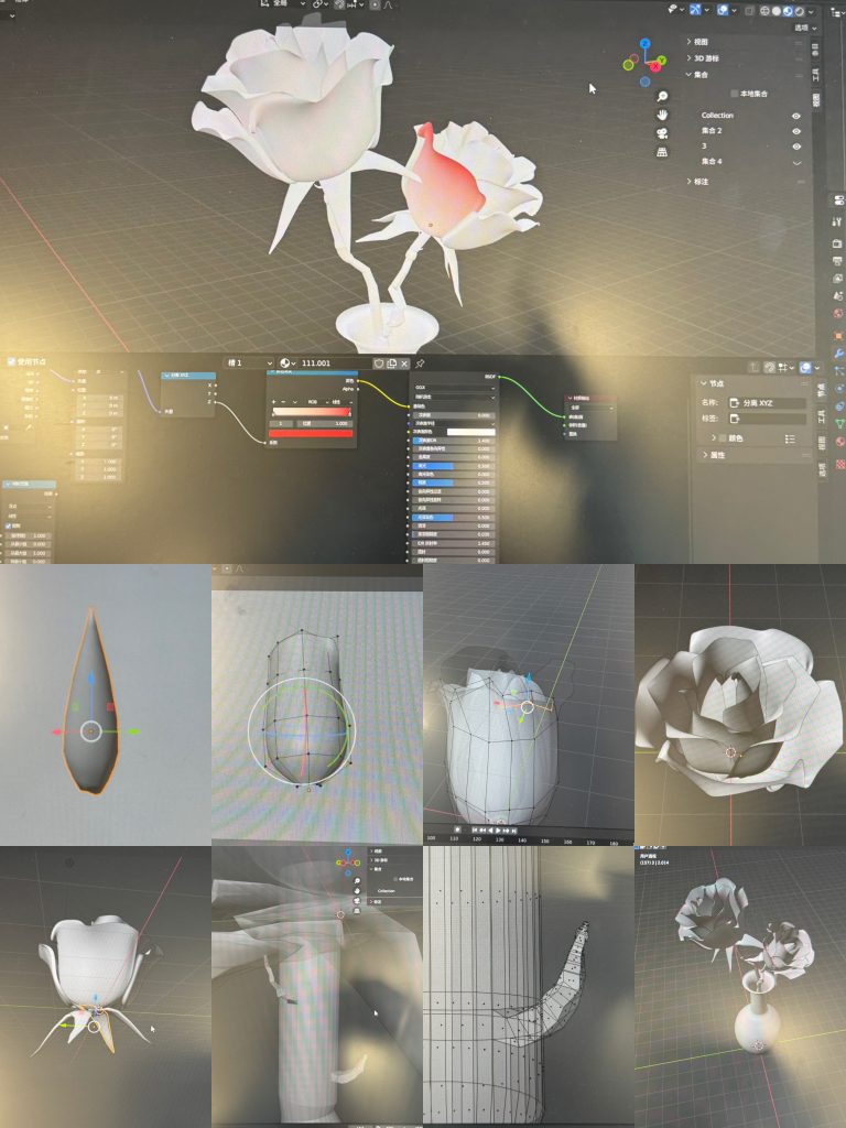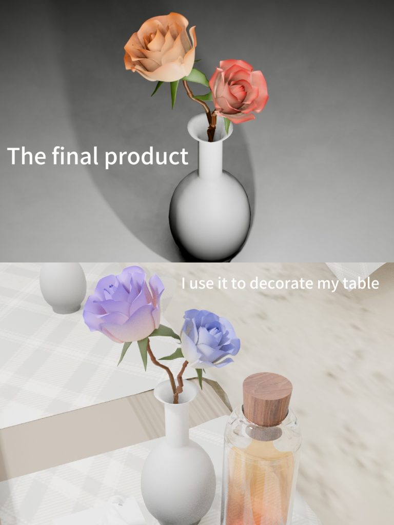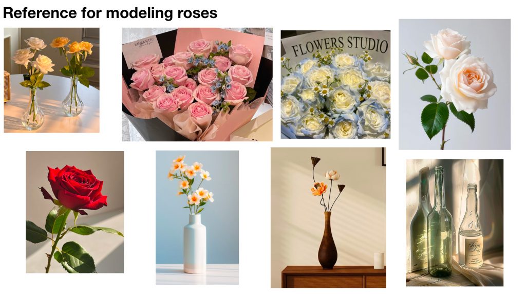 This is the process of modeling a rose, and I want to place a rose on my table.