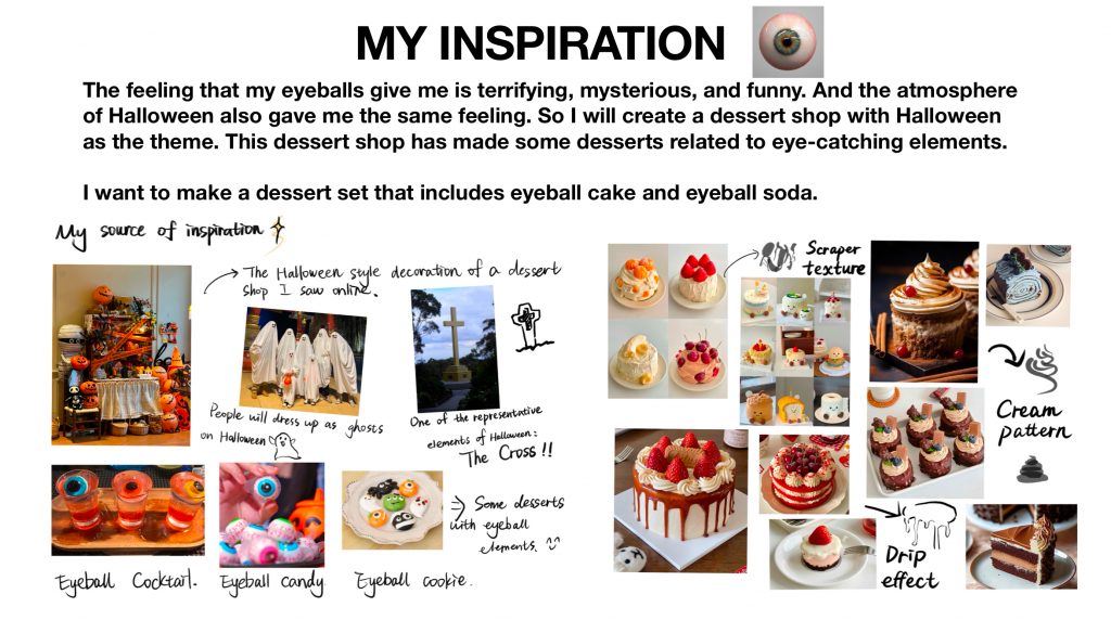 My story is set on a small street where a new dessert shop has opened. At that time, Halloween was approaching, so this dessert shop launched many Halloween themed desserts. A local resident learned of this news and booked a Halloween set meal at the store, planning to invite a friend from out of town to try it out.