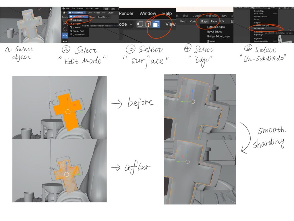 So I learned a good method of deleting face count online to help myself solve this problem.